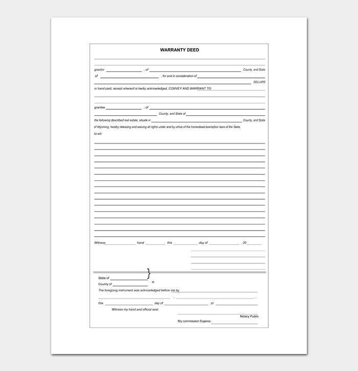 - Witnesses’ Names – most states require the signing of a warranty deed to be overseen by independent witnesses. Some states also require the witnesses to sign the document.