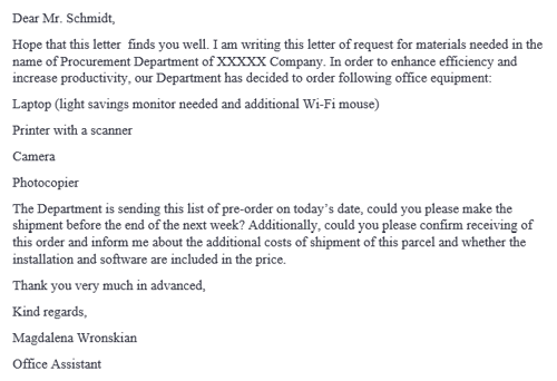 A Request Letter is a formal letter written to request something from an individual, a company, or an organization. When you are writing a request letter, you are asking someone to take the time to read your letter, consider your request, and act on that request. Request letters should be written in a kind, appreciative tone. When you ask someone to do something for you, make it as easy as you can for them to accomplish the task. For instance, if requesting donations, include a postage-paid, self-addressed envelope.